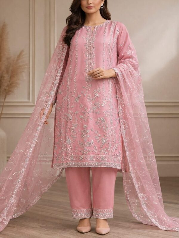 • Product: 3 PCs Stitch Organza Dress