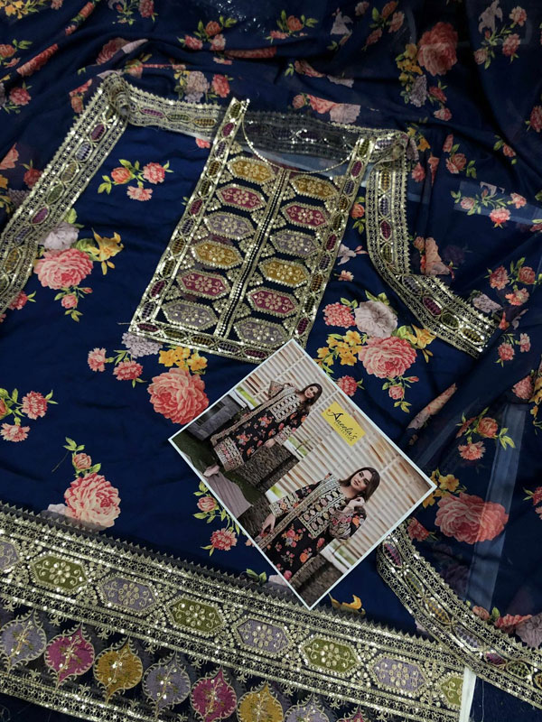 Heavy Embroidered Silk Dupatta with 04 Sides Cut work Border on Fabric