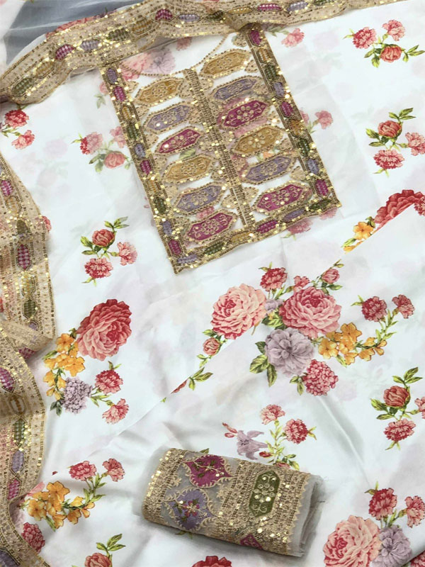 Heavy Embroidered Silk Dupatta with 04 Sides Cut work Border on Fabric